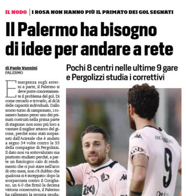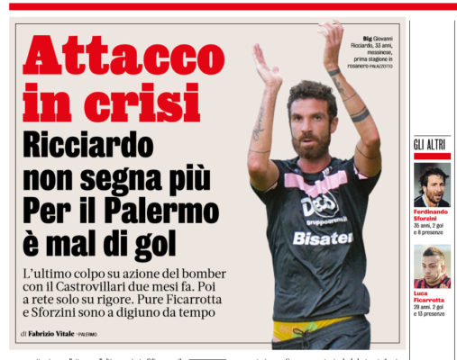 Gazzetta dello Sport: “Attacco in crisi, Ricciardo non segna più. Per il Palermo è mal di gol”
