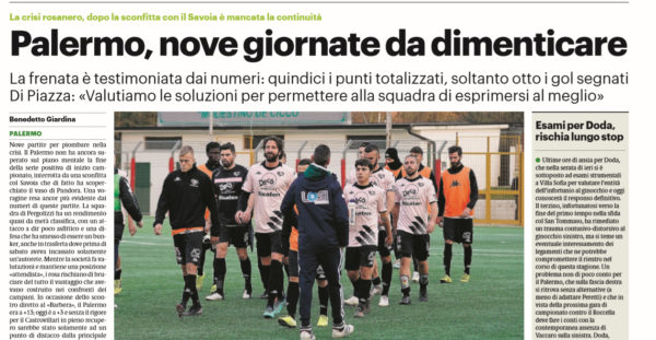 L'edizione odierna del "Giornale di Sicilia" si sofferma sul momento del Palermo. Ieri Pergolizzi ha provato a scuotere i suoi,...