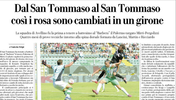 L'edizione odierna de "La Repubblica" si sofferma sul campionato del Palermo, dalla sfida di andata col San Tommaso a quella...