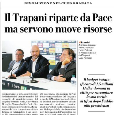L'edizione odierna de "La Repubblica" si sofferma sul momento del Trapani. Fabio Petroni, rappresentante dell’Alivision ( proprietaria del cento per cento...