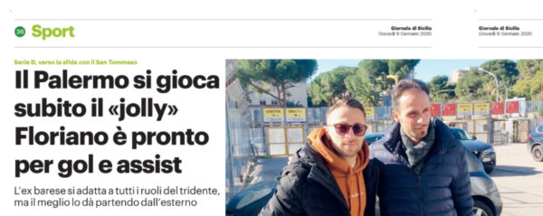L'edizione odierna del "Giornale di Sicilia" riporta le dichiarazioni di Massimo Morgia, ex tecnico rosanero, in merito all'arrivo di Floriano: «Esterno...