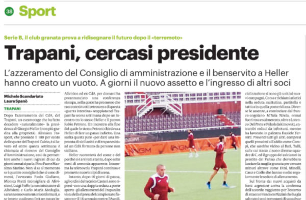 L'edizione odierna del "Giornale di Sicilia" si sofferma sulla situazione del Trapani. Alivision è chiamata al rinnovo del Consiglio d'Amministrazione, così...