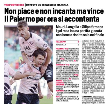 L'edizione odierna del "Corriere dello Sport" riporta le pagelle della sfida tra Palermo e Marsala. In basso, i giudizi del...