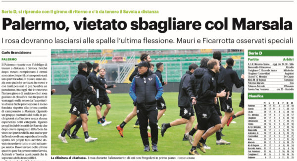 L'edizione odierna del "Giornale di Sicilia" parla del match di oggi che vedrà impegnato il Palermo contro il Marsala. I rosanero...
