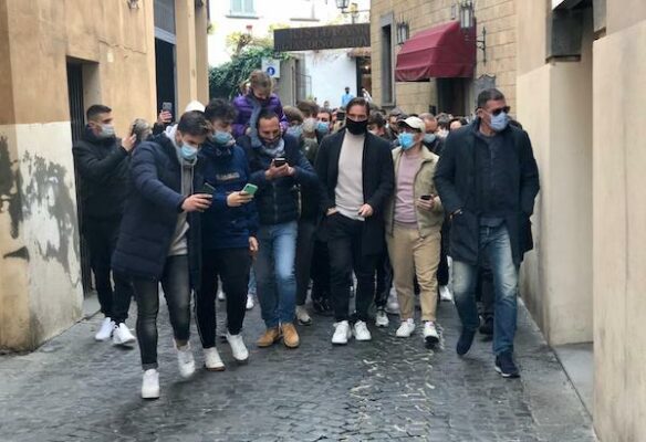 Totti e Lucarelli a pranzo insieme a pranzo: bagno di folla e richieste di selfie