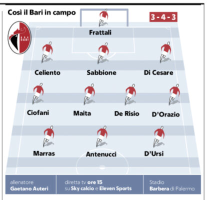 Repubblica: “Il Bari a Palermo per non perdere il contatto con la vetta. In attacco Marras, D’Ursi e Antenucci. Tornano disponibili De Risio e Sabbione”