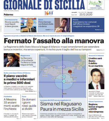Nella sua prima pagina il "Giornale di Sicilia" si sofferma sul terremoto nel Ragusano. La gente si è precipitata in...