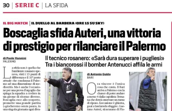 L'edizione odierna del "Corriere dello Sport" si sofferma sulla sfida fra Palermo e Bari. I pugliesi arrivano a Palermo con...