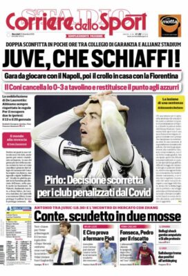 Nella sua prima pagina l'edizione odierna del "Corriere dello Sport" si sofferma sulla sconfitta della Juventus. I bianconeri perdono 0-3...