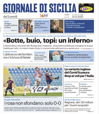 Nella sua prima pagina l'edizione odierna del "Giornale di Sicilia" si sofferma sul drammatico racconto dei 18 pescatori mazaresi. «Due...