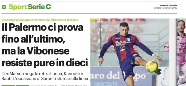 L'edizione odierna del "Giornale di Sicilia" si sofferma sul pari fra Vibonese e Palermo. I rosa sprecano due punti importanti....