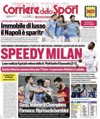 Nella sua prima pagina l'edizione odierna del "Corriere dello Sport" dedica ampio spazio al Milan. I rossoneri si sono imposti...