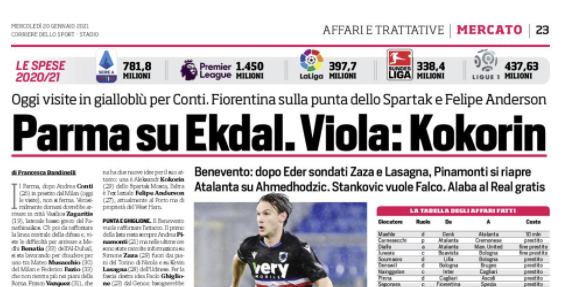 L'edizione odierna del "Corriere dello Sport" si sofferma sulle ultime trattative in Serie A. Il Parma lavora per uno tra...
