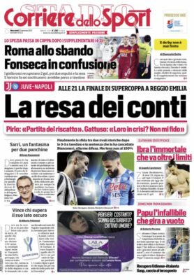 L'edizione odierna del "Corriere dello Sport" si sofferma sulla Supercoppa italiana. Juventus e Napoli si contendono il trofeo. Roma allo...