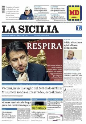 La Sicilia: “Respira. Conte ottiene la fiducia, ma gli servono altri numeri. Vaccini in Sicilia, taglio del 24%”