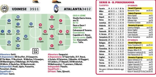 L'edizione odierna del "Corriere dello Sport" si sofferma sulla sfida fra Udinese e Atalanta, recupero della 10a giornata di Serie...