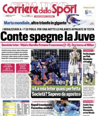 L'edizione odierna del "Corriere dello Sport" si sofferma sulla Serie A. L'Inter vince 2-0 contro la Juventus. Conte spegne i...
