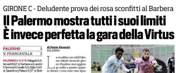 L'edizione odierna del "Corriere dello Sport" si sofferma sulla sfida fra Palermo e Virtus Francavilla. "I rosa sono una squadra...