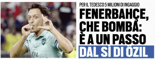 L'edizione odierna di "Tuttosport" parla di accordo tra Mesut Ozil e il Fenerbahce. 5 milioni di ingaggio totali, di cui...