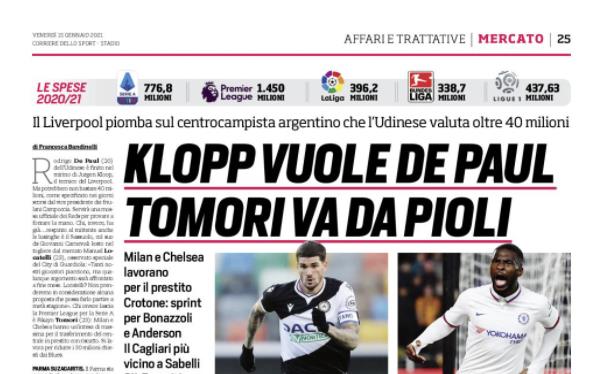 L'edizione odierna del "Corriere dello Sport" parla del mercato di Serie A. Rodrigo De Paul è finito nel mirino di...
