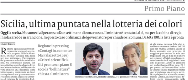 L'edizione odierna de "La Sicilia" parla della situazione Covid nell'isola. «Dichiari la Sicilia zona rossa per due settimane», l'invocazione del...