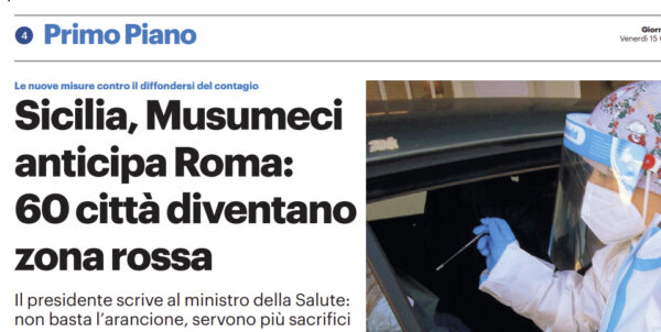 Gds: “Sicilia, Musumeci anticipa Roma: 60 città diventano zona rossa”