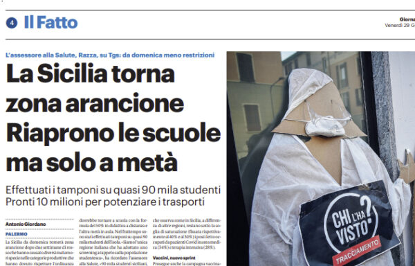 L'edizione odierna del "Giornale di Sicilia" parla della situazione Covid in Sicilia. La Sicilia da domenica tornerà zona arancione dopo...