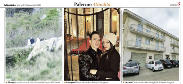 Corriere dello Sera: “Caccamo «Roberta uccisa dal fidanzato». Lo strazio di due madri «Era sempre in casa mia, ho nutrito l’assassino». «Lei era di famiglia»”