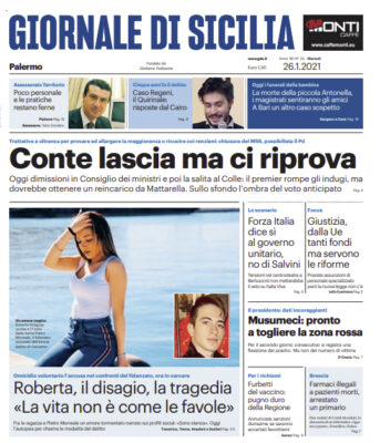 La prima pagina dell'edizione odierna del "Giornale di Sicilia" si sofferma sulle dimissioni di Conte. Il premier rompe gli indugi,...