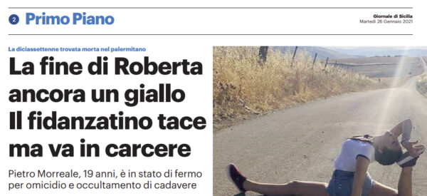 L'edizione odierna del "Giornale di Sicilia" si sofferma sulla tragica scomparsa di Roberta Siragusa. Il fidanzato 19enne è stato fermato...