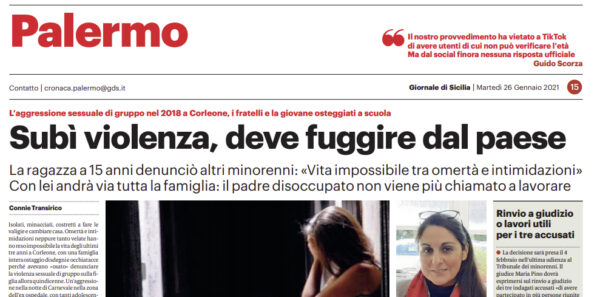 L'edizione odierna del "Giornale di Sicilia" si sofferma sull'aggressione sessuale di gruppo nel 2018 a Corleone ai danni di una...