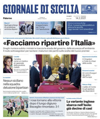 Prima pagina Giornale di Sicilia: “«Facciamo ripartire l’Italia». La variante inglese sbarca nell’Isola. I rosa tornano alla vittoria”