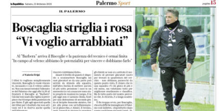 L'edizione odierna de "La Repubblica" riporta le dichiarazioni di Roberto Boscaglia, allenatore del Palermo: «La mia squadra avrà una faccia...