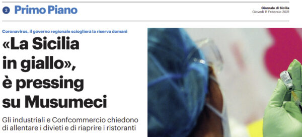 Gds: “«La Sicilia in giallo», è pressing su Musumeci. Gli industriali e Confcommercio chiedono di allentare i divieti e di riaprire i ristoranti”