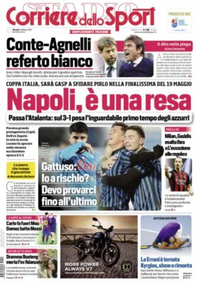 La prima pagina dell'edizione odierna del "Corriere dello Sport" si sofferma sulla semifinale di ritorno di Coppa Italia. L'Atalanta stende...
