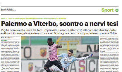 L'edizione odierna del "Giornale di Sicilia" si sofferma sulla trasferta fra Viterbese e Palermo. Partita dura per i rosa all'ora...