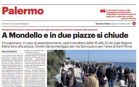 L'edizione odierna del "Giornale di Sicilia" si sofferma sull'emergenza Coronavirus a Palermo. Oggi e domani, dalle 16 alle 22, Orlando...