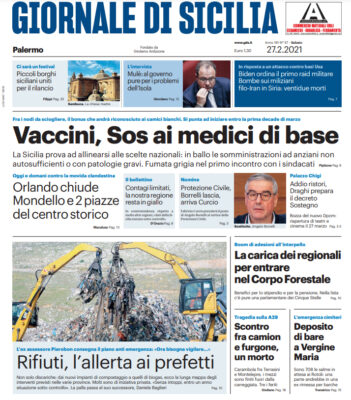 Prima pagina Giornale di Sicilia: “Vaccini, Sos ai medici di base. Orlando chiude. Addio ristori, Draghi prepara il decreto Sostegno”