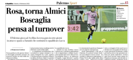 L'edizione odierna di "Repubblica" parla della trasferta del Palermo sul campo dell'Avellino in programma domani. Terza partita in otto giorni....