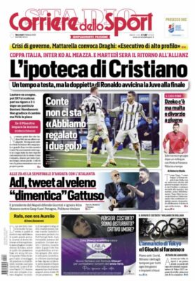Prima Pagina Corriere dello Sport: “Inter ko al Meazza. Mattarella convoca Draghi”