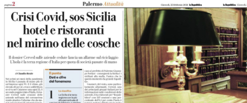 L'edizione odierna de "La Repubblica" si sofferma sul rischio delle infiltrazioni mafiose in hotel e ristoranti siciliani. Il dossier Cerved...