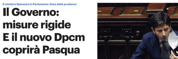 Gds: “Il Governo “Misure rigide”. E il nuovo Dpcm coprirà Pasqua”