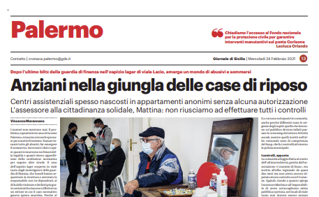 L'edizione odierna del "Giornale di Sicilia" si sofferma sulle case di riposo di Palermo. Il caso dell'ospizio lager scoperto in...