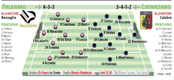 L'edizione odierna del "Giornale di Sicilia" si sofferma su Palermo-Catanzaro. Il match avrà inizio alle 12:30. In foto le probabili...