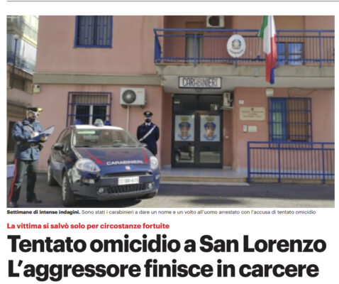 Gds: “Palermo. Tentato omicidio a San Lorenzo. L’aggressore finisce in carcere”
