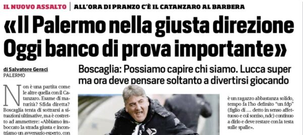 L'edizione odierna del "Corriere dello Sport" riporta le dichiarazioni di Roberto Boscaglia, allenatore del Palermo: «Abbiamo imboccato la strada giusta...