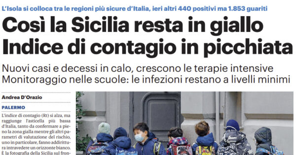 L'edizione odierna del "Giornale di Sicilia" si sofferma sulla situazione epidemiologica in Sicilia. L'indice di contagio (Rt) si alza, ma...