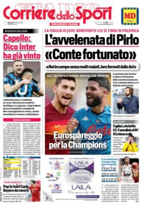La prima pagina dell'edizione odierna del "Corriere dello Sport" parla di Eurospareggio per la Champions League. Questa sera si giocherà...