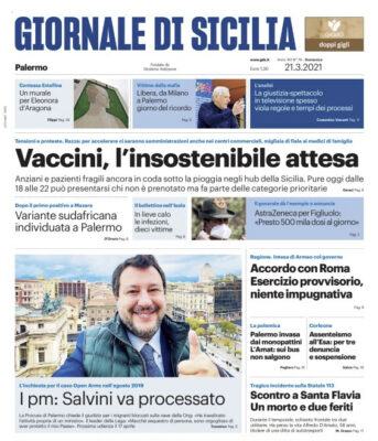 L'edizione odierna del "Giornale di Sicilia" parla di Anziani e pazienti fragili ancora in coda sotto la pioggia negli hub...