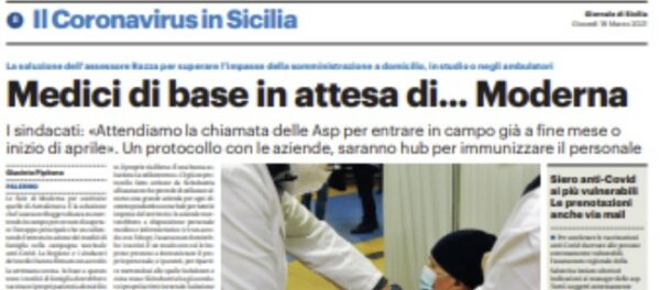 Gds: “Sicilia Medici di base in attesa di… Moderna. I sindacati: «Attendiamo la chiamata delle Asp per entrare in campo già a fine mese o inizio di aprile»”